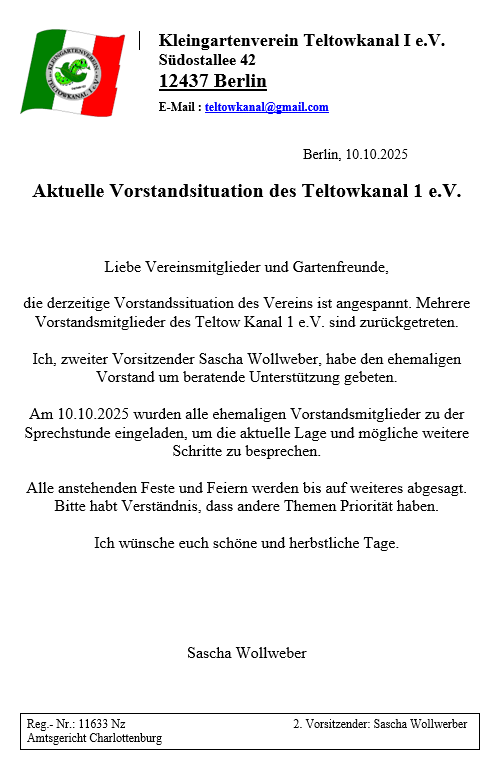 Aktuelle Informationen in den Schaukästen oder in der Sprechstunde vom Vorstand